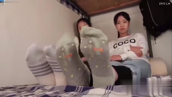 双人 学生 卡通棉袜 裸足 秀足